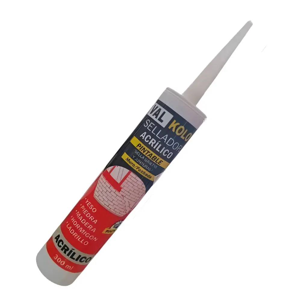 Sellador acrílico pintable Valkolor color blanco, en cartucho de 300 ml, presentación en pack de 24 unidades.